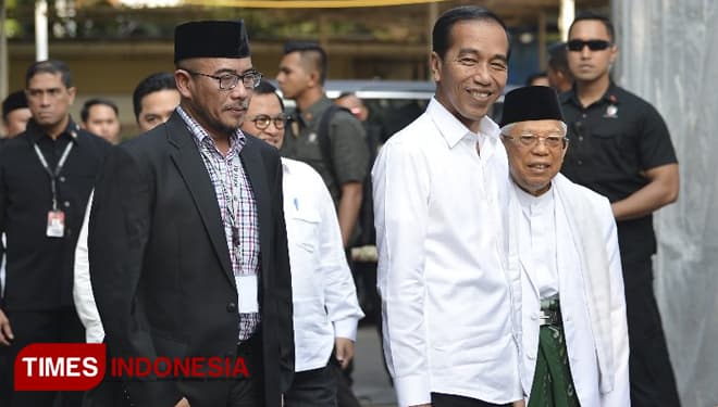 TIMES Bima/Presiden terpilih, Jokowi, saat tiba di Gedung KPU RI, Minggu (30/06/2019). (FOTO: Hasbullah/TIMES Indonesia).